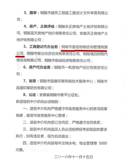 泰祥科创园以完善综合配套为抓手,致力为园区企业打造便捷服务平台,为创新创业者提供专业特色和定制化的增值服务。入驻企业--铜陵市嘉信财税咨询管理公司,在园区开设工商登记代办窗口(泰祥办公楼二层)。今后,园区企业在园区内可免费办理工商登记、变更以及刻章业务,或拨打联系电话13856213370、0562-5881186享受上门服务。