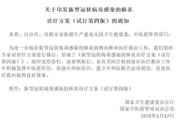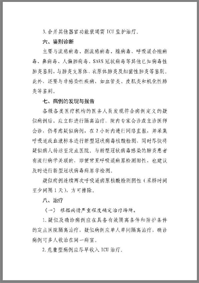 新型冠状病毒感染的肺炎诊疗方案