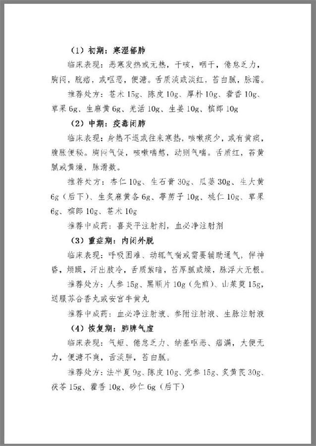 本病属于中医疫病范畴,病因为感受疫戾之气,各地可根据病情、当地气候特点以及不同体质等情况,参照下列方 案进行辨证论治。