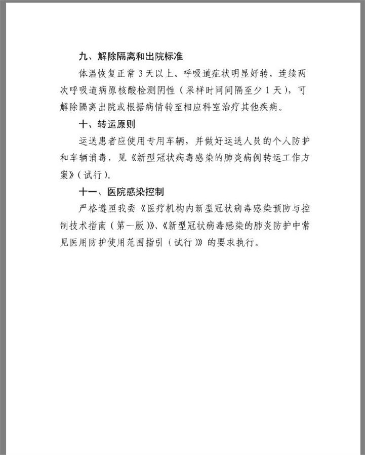 九、解除隔离和出院标准